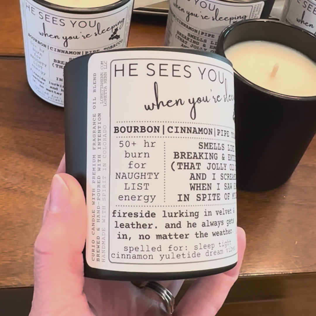 HE SEES YOU When You're Sleeping: Sleep Tight Cinnamon Yuletide Dreams candle