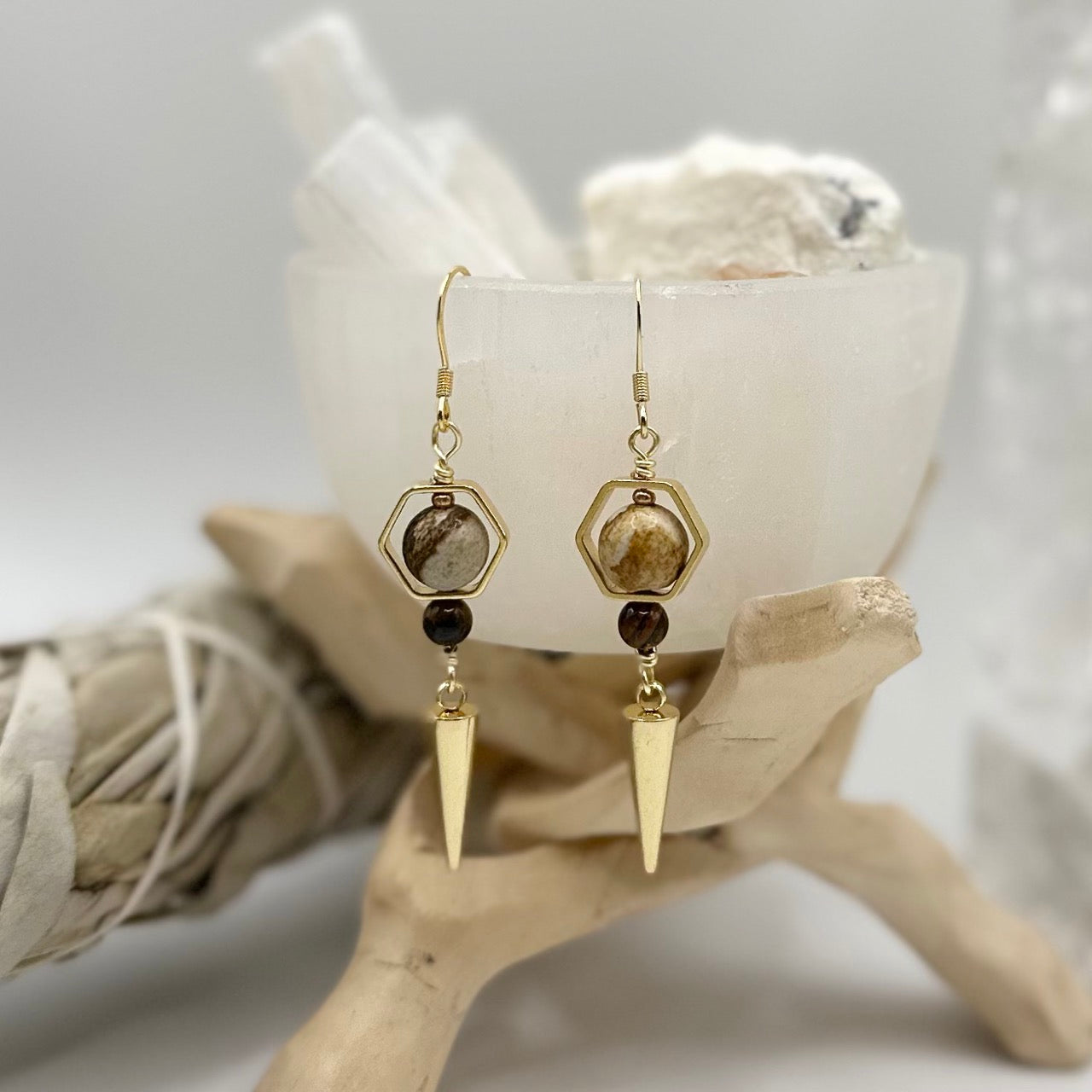 Spell Earrings designed & handcrafted from my Magisterium Tower (spare bedroom) on Haunted Hill (Green Mountain, CO) with love & support from the Warlocks' Council (son+hubby) & our Familiar (Trigger, the 110lb. rescue pup).